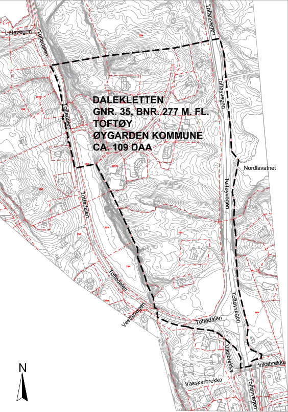 I medhald av plan og bygningslova (pbl) § 12-8 vert det med dette varsla at det skal setjast i gong detaljregulering for Dalekletten, gnr. 35, bnr. 277 m.fl., Toftøy i Øygarden kommune